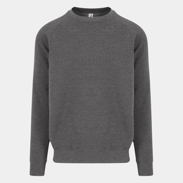 Heavyweight sweat. Twin-needle stitching detail. Raglan sleeves. 2 x 1 ribbed cuffs and hem. Soft cotton faced fabric creates ideal printing surface. Simple tear-out label makes it perfect for rebranding. Brushed inner fleece.